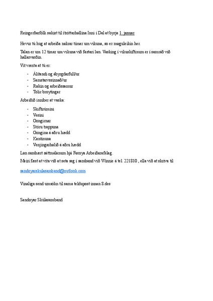 Skrivstovan er opin mánadag til fríggjadag 9-13.00
