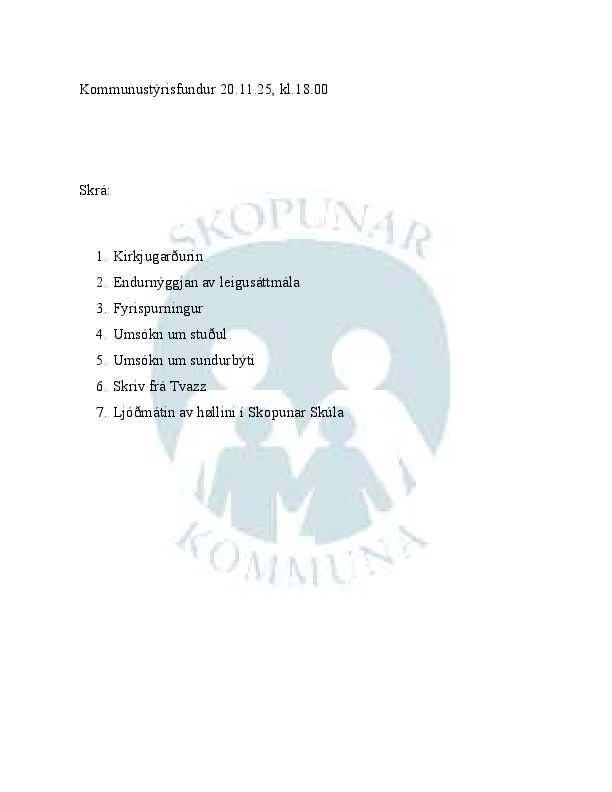 Kommunustýrisfundur 20.11.2025 kl. 18.00